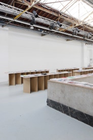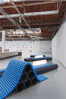Comme pour répondre à l’immatérialité de la programmation, les différents éléments scénographiques se révèlent par un choix de matériaux ostensibles. Employés bruts pour s’auto-revendiquer, ils évoquent la construction, la conservation, les flux, le fun. Leur assemblage léger, élémentaire et leur apparente hétérogénéité participent à une logique agile, combinatoire, démontrant l’ardeur des centres d’art à toujours évoluer avec lui.