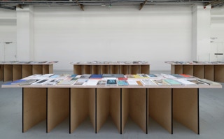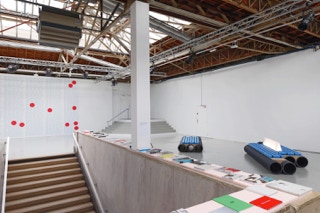 La galerie haute du Palais de Tokyo se prête à une distribution symétrique de l’espace pour former une agora propice à l’oralité. Une scène centrale s’offre au regard à la montée des marches, tandis que le reste de la galerie rassemble une exhaustive collection d’éditions, d’oeuvres sonores et vidéos.