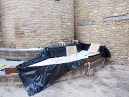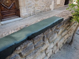 Il s’agit de transformer les assises centenaires de la ville (murets, marches, banc) en coulant sur place des coussins de mousse à même la pierre. C’est un nappage autant qu’un camouflage : Améliorer le confort de ces murets en apportant mollesse et chaleur, reproduire la pierre par un coulage sédimentaire de la matière.