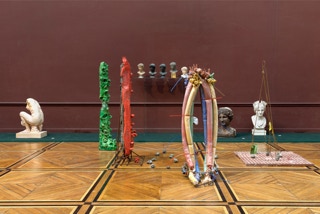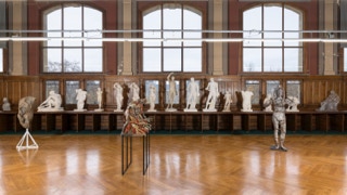 Michael Dean, Jumana Manna, Charlotte Moth, Jean-Luc Moulène ou Francisco Tropa sont quelques-uns des artistes inspirés des effets de réplication, de variation, de transformation ou de changement d'échelle propres au moulage. Leurs œuvres ont été réunies autour des collections historiques de moulages constituées au 19e siècle par les Beaux-Arts de Paris et la Faculdade de Belas Artes de Lisbonne. Les deux groupes se mêlent dans un jeu de répétitions infinies qui voit passer les modèles classiques des figures antiques aux sculptures contemporaines. Sculptures Infinies est le fruit d'une collaboration entre les BeauxArts de Paris et le Calouste Gulbenkian Museum de Lisbonne, en partenariat avec la gypsothèque du Louvre à Versailles, les ateliers d'Art, Moulage & Chalcographie de la Réunion des musées nationaux - Grand Palais et la Faculdade de Belas Artes à Lisbonne.