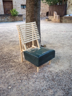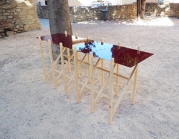 Une scénographie de plein air, du mobilier pour poser son corps, son verre, son regard ou son macbook. Des tables et des chaises en somme.